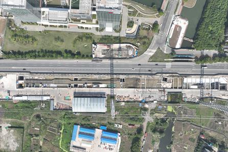 爱格豪路站、珍珠湖路站、渭中路站:基坑土方开挖正在完成车站主体地连墙和冠梁混凝土支撑。朗力福大道站北区正在进行钢板桩围堰施工(最后一层土方回填);在南区完成场地布置、管道迁变及附属钢板桩围堰施工,完成导墙施工,准备地墙施工。
