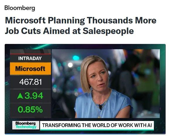 这次是继微软 5 月份裁 6000 随后又一轮裁员计划,当时的裁员对象主要是产品和工程岗位,销售和营销等面向客户的岗位几乎没有受到影响。