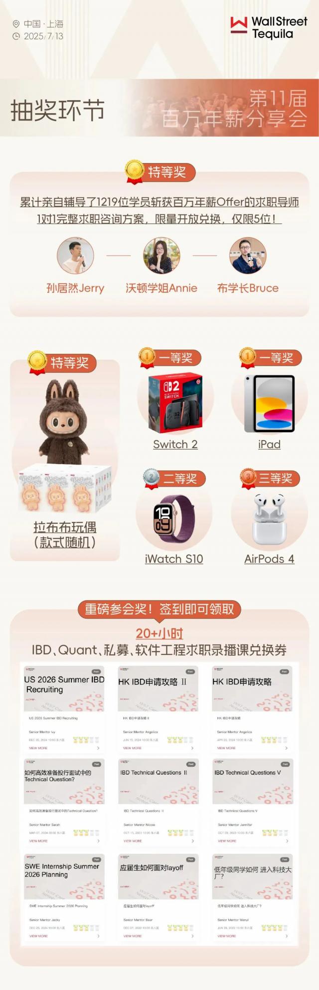 自 2018 年开始,WST 举办了多次年薪百万的交流会。以留学生求职为主题的大型线下交流会,WST 团队精心邀请了来自各种高薪职业的导师和在艰难求职季仍然稳步上岸的导师。 WST 成功者,整理海外求职情况,处理众多留子困扰。超 20000 位留学生在 WST 百万年薪俱乐部对求职有了新的认识。