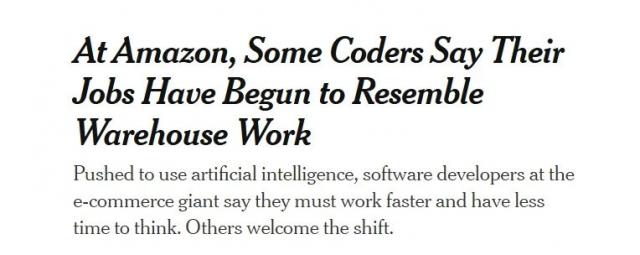 尽管失业率有所上升,软件工程师每天都沉浸在裁员或即将裁员的气氛中,但是对他们来说,更加直接的负面影响似乎是工作质量的变化。:被迫使用 AI 为了提高生产力,实现更高的产出,这使得软件工程师的工作“变得更加日常,缺乏思维,节奏更快”。