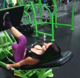 动作要领:坐在腿举机上,背部和臀部靠在靠垫上,双脚踩在踏板上(不同部位的位置比肩宽或窄点练习)。吸气慢慢弯曲膝盖,放下踏板(不要放得太低,屁股不要离开靠垫)。呼气踩踏板,伸直双腿(不要完全锁住膝盖),感受大腿前侧的力量。