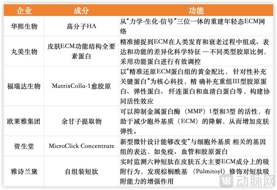 总的来说,很多品牌的R&D方向主要有两个,一个是补充ECM或调整其关键成分;第二,避免ECM被破坏。为了实现这两个目标,需要保证原材料的供应,这可能就是资本积极进入市场的原因。