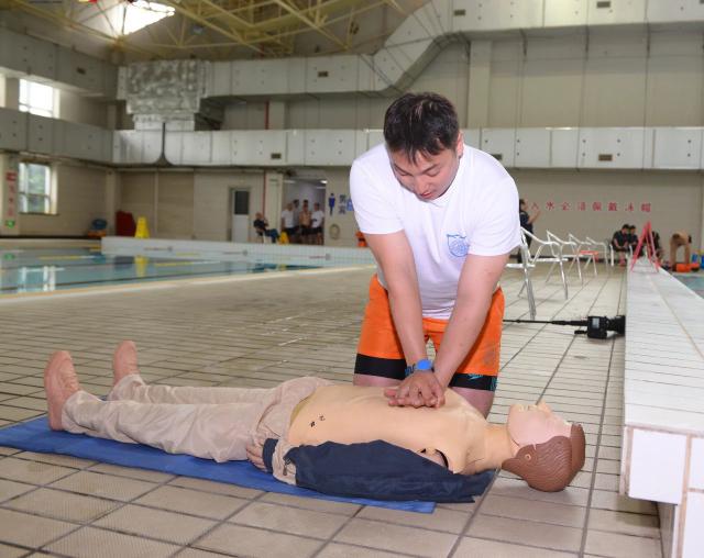 在模拟救生赛阶段,考验选手的团队合作精神。游泳池中突发的许多模拟事件都是由真人演绎的,包括水中救援、假人拖把、“ CPR “抢救等。经常发生。选手分工快,有的判断“溺水者”的情况,有的取用设备,有的进行救援,以精准的方法和最短的时间完成救援,展现专业和默契。