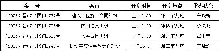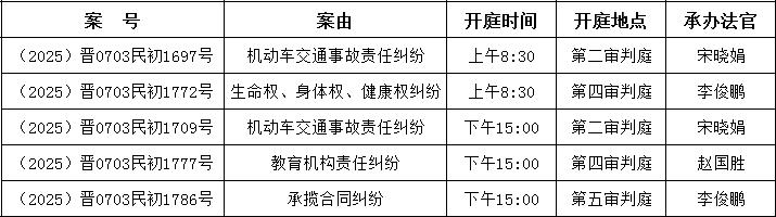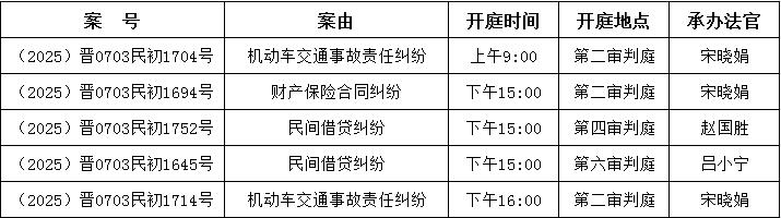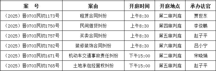 编辑整理了2025年6月23日至6月27日的审判案件。如果里面有你的案子,记得按时参加庭审;如果这里没有你的案子,有兴趣的朋友也可以带着身份证来参观。除了涉及国家机密、商业机密、个人隐私、当事人申请不公开的法律案件外,都是公开审理的。下列开庭信息是提前整理形成的。由于案件审理过程中可能会遇到调解、撤诉、延期审理等特殊情况,有时会对开庭时间进行调整。如果到时与实际开庭时间、地点不一致,则以实际情况为准。