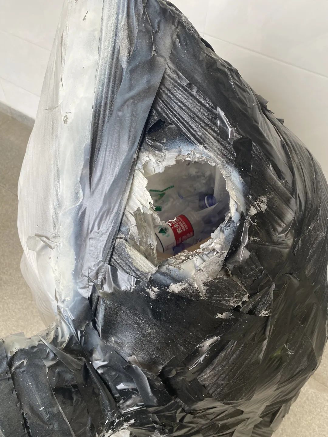在现场,一件名为《联想》的雕塑引起了记者的注意。它是以虎鲸为原型,通过塑料瓶、聚乙烯等各种塑料垃圾搭建而成。虎鲸眼睛的“洞口”设计是这部作品的亮点。各种塑料垃圾都填满了“洞口”。创作者希望通过这种设计,让人们关注虎鲸体内的垃圾,进而认识到海洋环保的重要性。