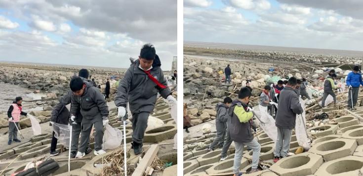 这样一群人经常出现在东滩自然保护区生态大堤外。他们拿着塑料袋,捡起被遗弃的塑料瓶和塑料袋...这不是简单的净滩活动,而是上海实验学校附属东滩学校(以下简称“上实东滩学校”)师生常态化的海洋环保行动创意雕塑课程。