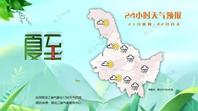 2025年6月21日17时,黑龙江省气象台发布了21日晚至24日的全省天气预报: