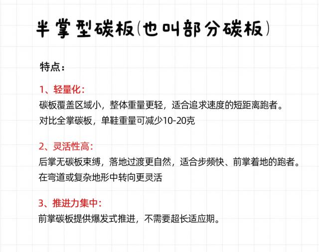 市场上的碳板跑鞋一般分为全掌碳板和半掌碳板