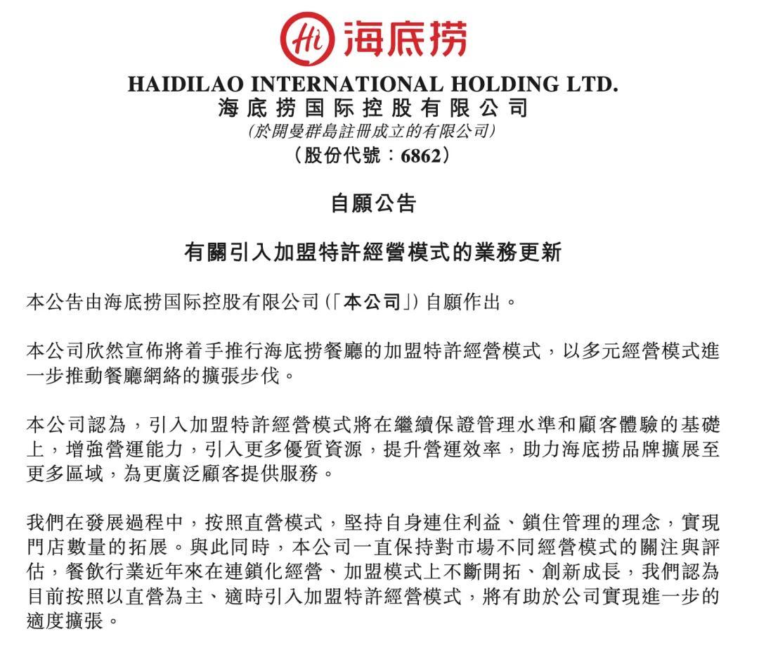 海底捞选择了开放加盟这种聪明的方式,吸引了潜在加盟商在沉线市场上拥有高质量点位的主动申请。
