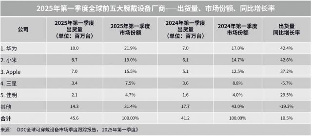华为跃居世界第一!第一季度,全球腕戴设备市场数据发布