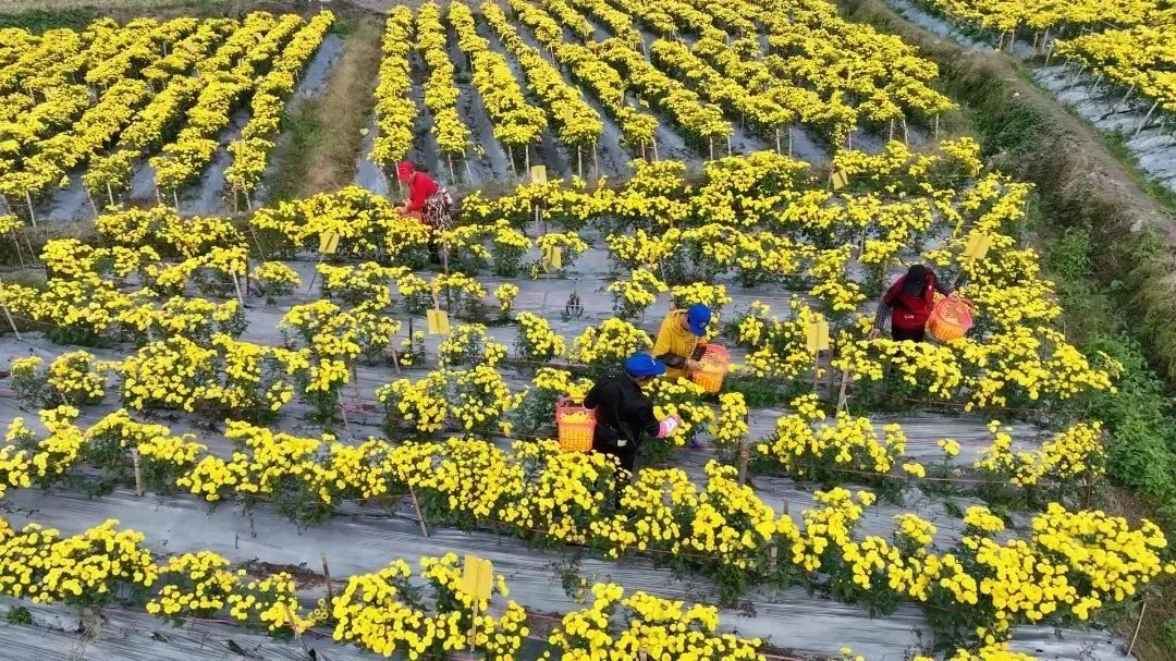 精心培育的菊花产业成为村民致富的“金钥匙”。只有种植菊花,周边80多户村民才能在“家门口”就业。基地年薪130多万元,每年通过土地流转,村集体收入可达34万元左右,有效拓展了当地村民增收致富的渠道。