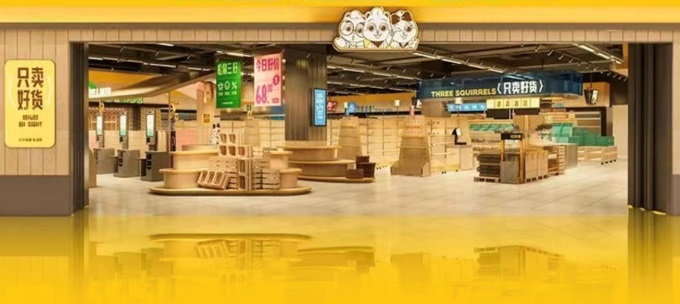 据悉,安徽芜湖松鼠镇南门三只松鼠总部Sunshine阳光之城一楼有三只松鼠,占地560平方米,定位为“覆盖日常生活全场景”。