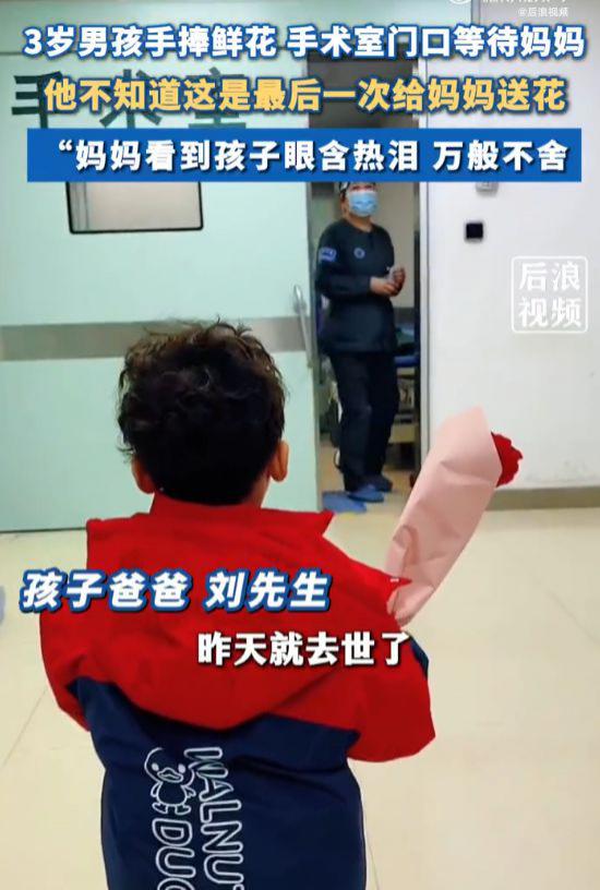 最近,辽宁沈阳。3 这个年轻人手里拿着一朵花,在手术室门口等着他的母亲。他不知道这是最后一次给他妈妈送花。爸爸说他老婆因为癌症去世了,当时正在做肾造瘘手术。当他知道他老婆时间不多的时候,他带着孩子去买了一朵花。他老婆出来后,收到了一朵花,看着孩子眼里含着泪水。