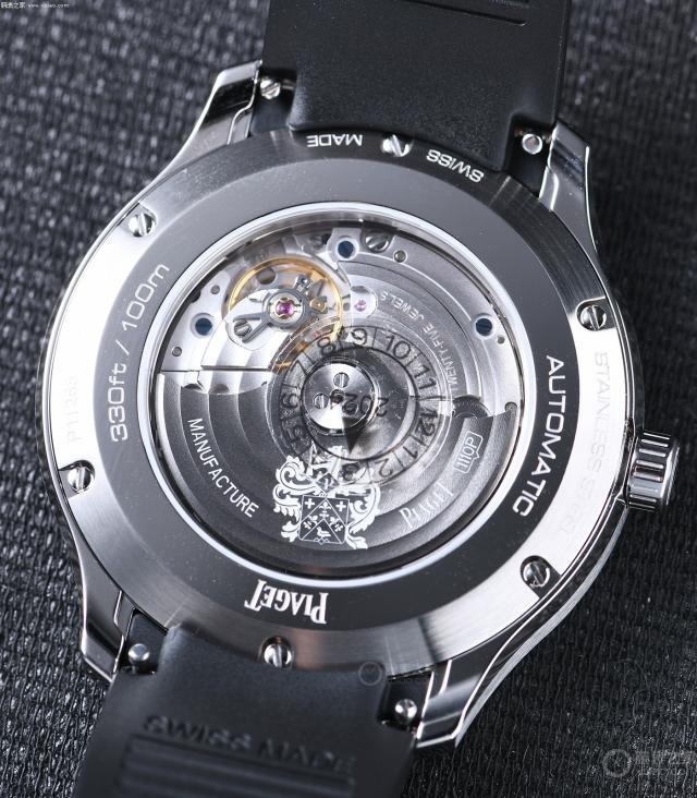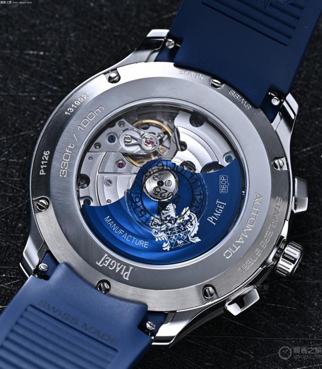POLO 使用伯爵记时 1160P 自计时机芯。伯爵 1160P 自计时机芯,积家751 运动是兄弟型的,是一个主要推动超薄的自动上弦计时运动,记时部件采用柱轮、垂直离合的组合。只有机芯薄而厚 5.72 mm,与劳力士相比,它具有自动计时机芯。 3135/3235 所有的机芯都要薄。1160P 运动,同样是伯爵一贯的上夹板环状日内瓦图案,下夹板珍珠纹装饰,露出螺丝头烤蓝。这个冰蓝色的盘子,配上蓝色的自动陀;像绿色的盘子,配上灰色的自动陀。