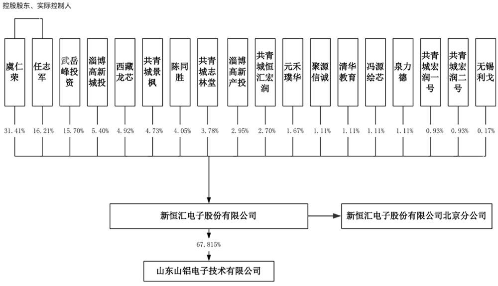 2017年12月新恒汇有限公司成立时,股东为恒汇电子、陈同强、淄博志林堂(持股平台,不从事具体业务)。其中,恒汇电子拥有新恒汇90.29%的股份,陈同强拥有新恒汇5.83%的股份,淄博志林堂拥有新恒汇3.88%的股份。