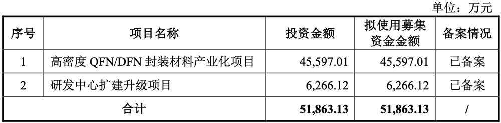在这次IPO中,新恒汇计划为高密度QFN/DFN封装材料产业化项目和R&D中心扩建升级项目筹集5.19亿元。