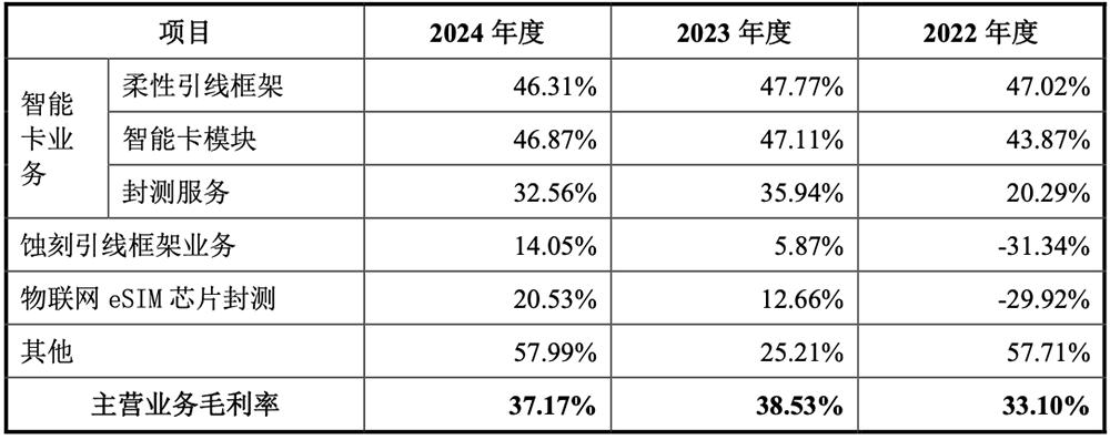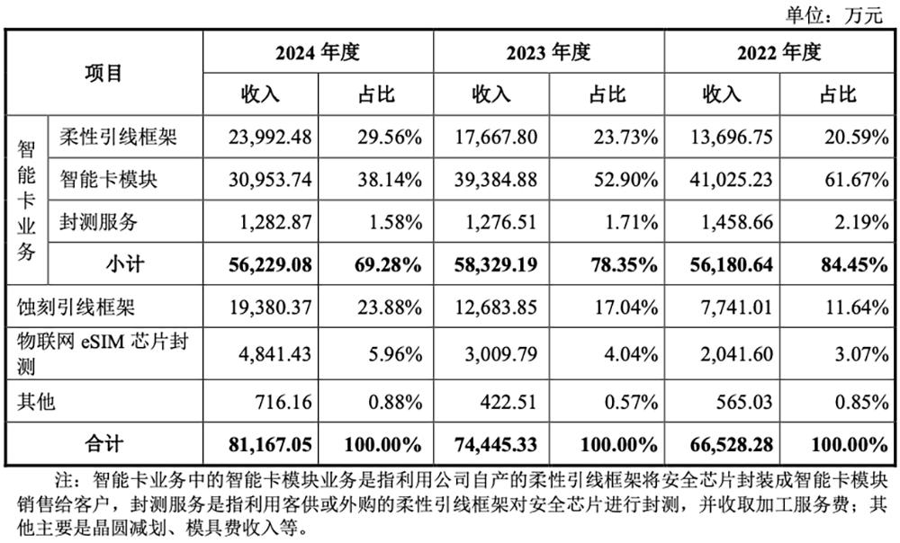 新恒汇自成立以来,一直致力于为客户提供引线框架产品和包装测试服务,智能卡业务是其收入和利润的主要来源。