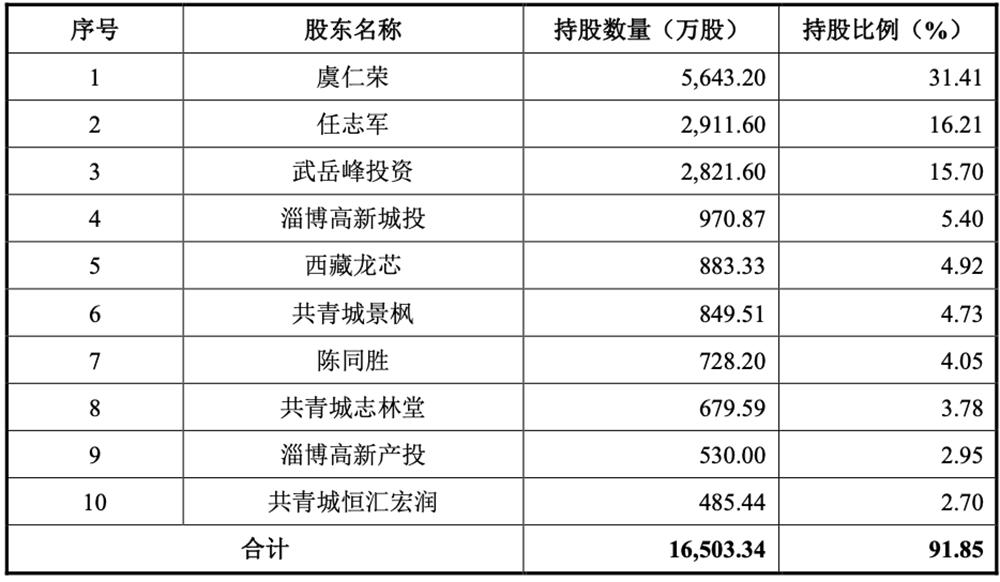 淄博高新城投和淄博高新产投各自持仓5.40%和2.95%。