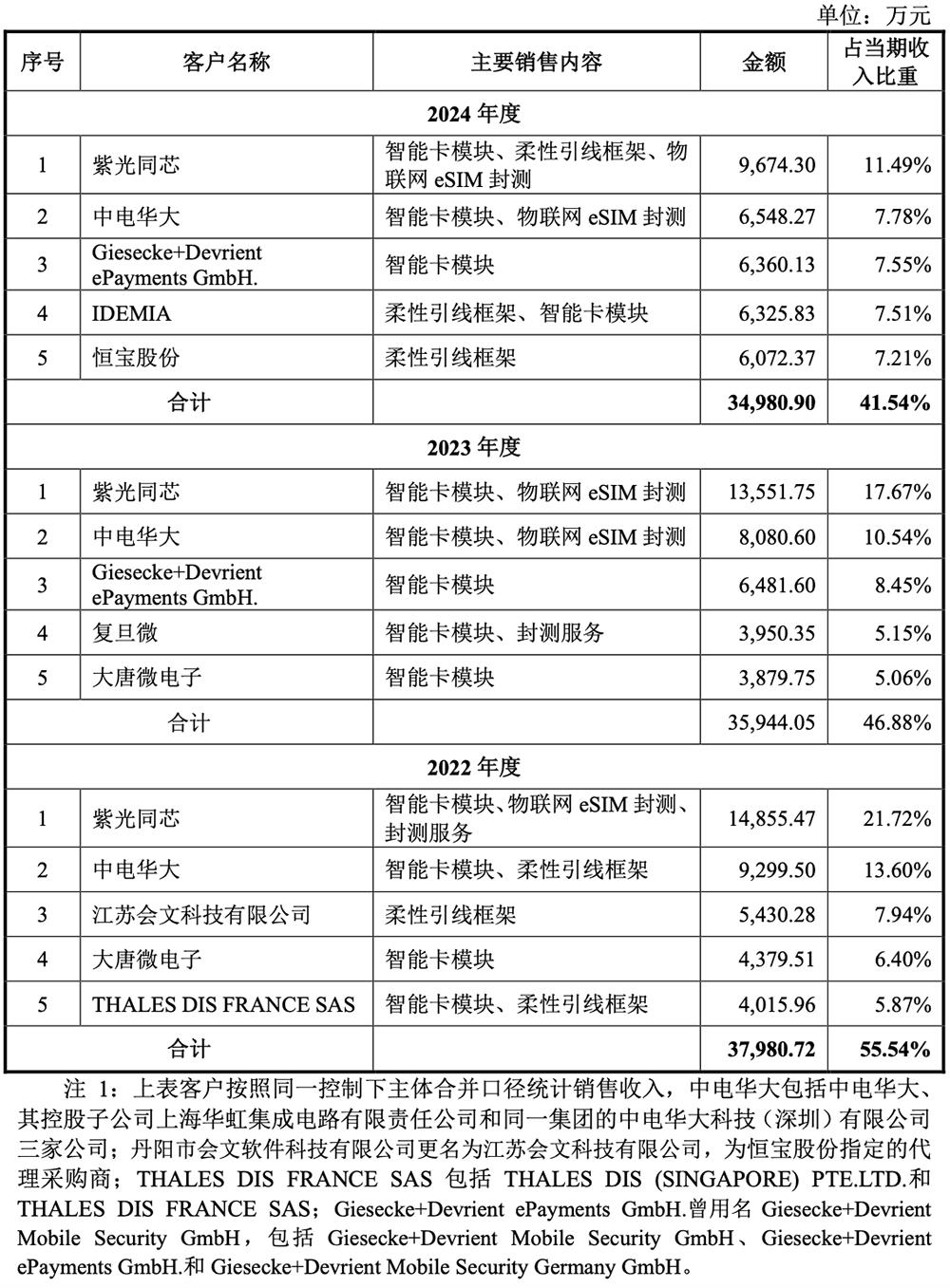 新恒汇在2022年、2023年和2024年的销售收入分别为3.80亿元、3.59亿元和3.50亿元,占营收的55.54%、46.88%、集中度高的41.54%。