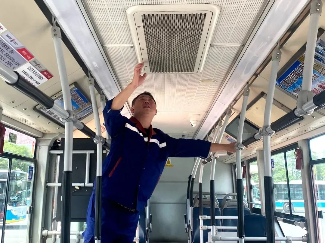 在公交车上,当公交车内温度达到26摄氏度以上时,打开汽车空调,根据乘客需求和密度动态调节温度,确保乘车体验舒适。车内配备必要的防暑降温药物和材料,提前打开空调降温。司机和乘客应加强检查,并及时帮助身体不适的乘客。同时,重点加强对公交车站充电设施、车辆轮胎、制动系统的检查和维护频率,确保运行安全。