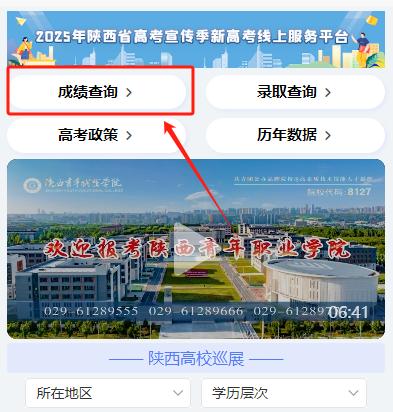 考生还可以登录“陕西考试招生”小程序,进入2025年陕西省高考宣传季新高考在线服务平台,点击“成绩查询”查询自己的高考成绩。