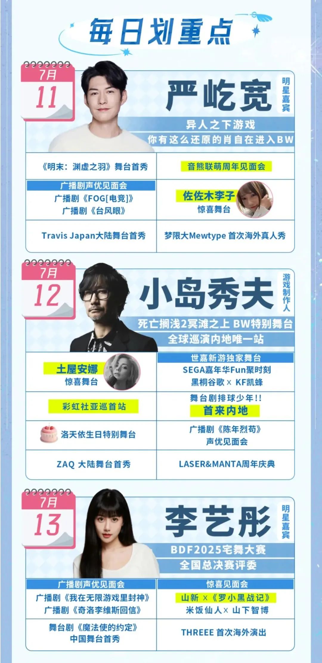 根据哔哩哔哩的说法,今年BW将会有很多重磅嘉宾,如小岛秀夫、孤独摇滚作者等。