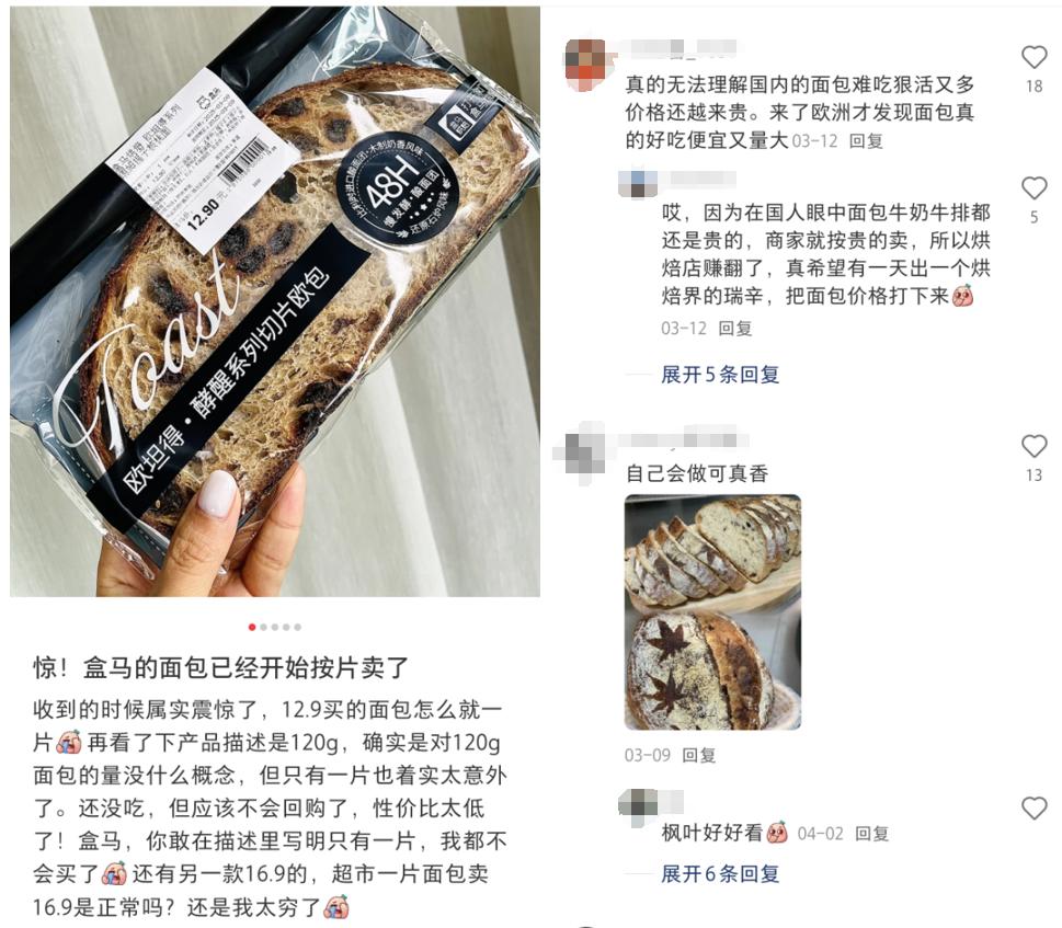 ▲在社交媒体上,关于盒马酸面团定价的讨论