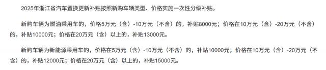 举例来说,杭州的政策是根据购车价格和能源类型,给予。 8000-15000 补贴,这一政策不能与国家补贴一起使用,直到资金用完。