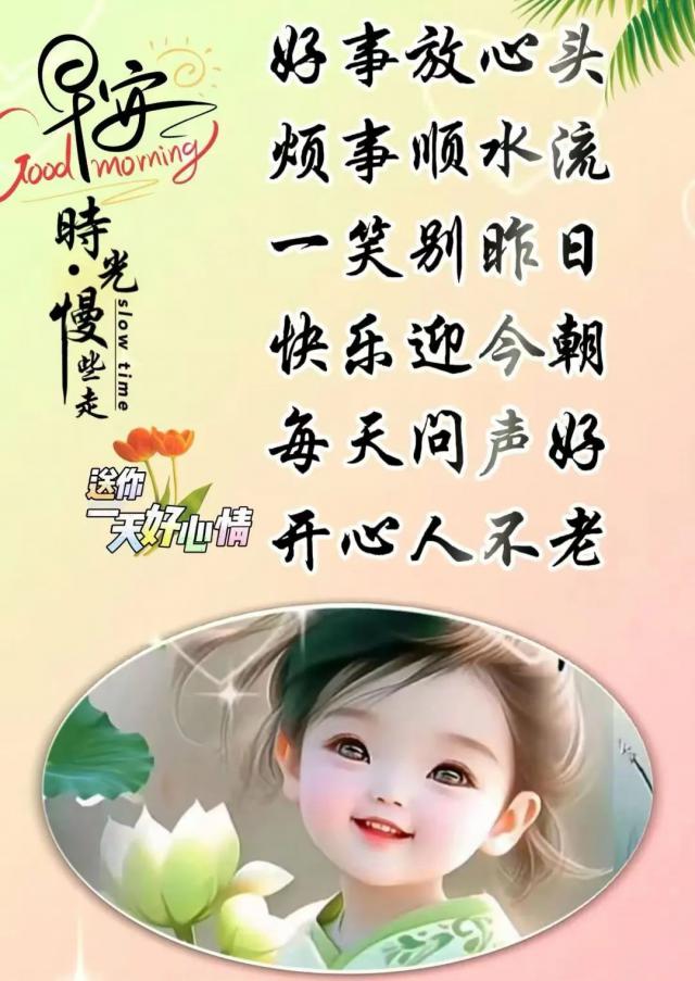 祝你好运,天天开心。从新的一天开始,工作迅速前进,生活幸福,心情经常微笑。愿你的每一天都充满能量和正能量,加油!早上好!