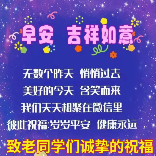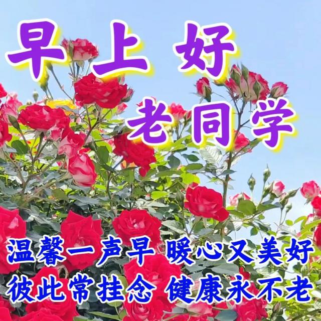 老同学!万事如意,是我对你最真挚的祝福。愿你的每一个愿望都实现,每一个梦想都实现。愿你的人生充满鲜花和鸟语,充满好运和喜悦。愿你的每一天都充满吉祥和平,早上好,朋友们!