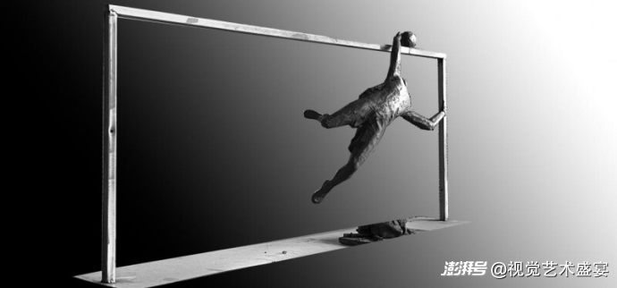 《苏超门将严子航》以“动态凝结”为创作核心,艺术家通过三种艺术处理取得突破:一是面部塑造采用超现实手法,高高跃起的身材与球的门套形成强烈的心理紧张;第二,手和球接触的瞬间被放大,让观众仿佛看到了对手球员的射门;第三,底座与门框融为一体,形成一幅长方形的画面。使作品就像一幅立体的画,既有油画的饱满,又有水墨画的留白意境。整部作品以定格的场景完成了射球、扑救、球未进三重时空叙述。