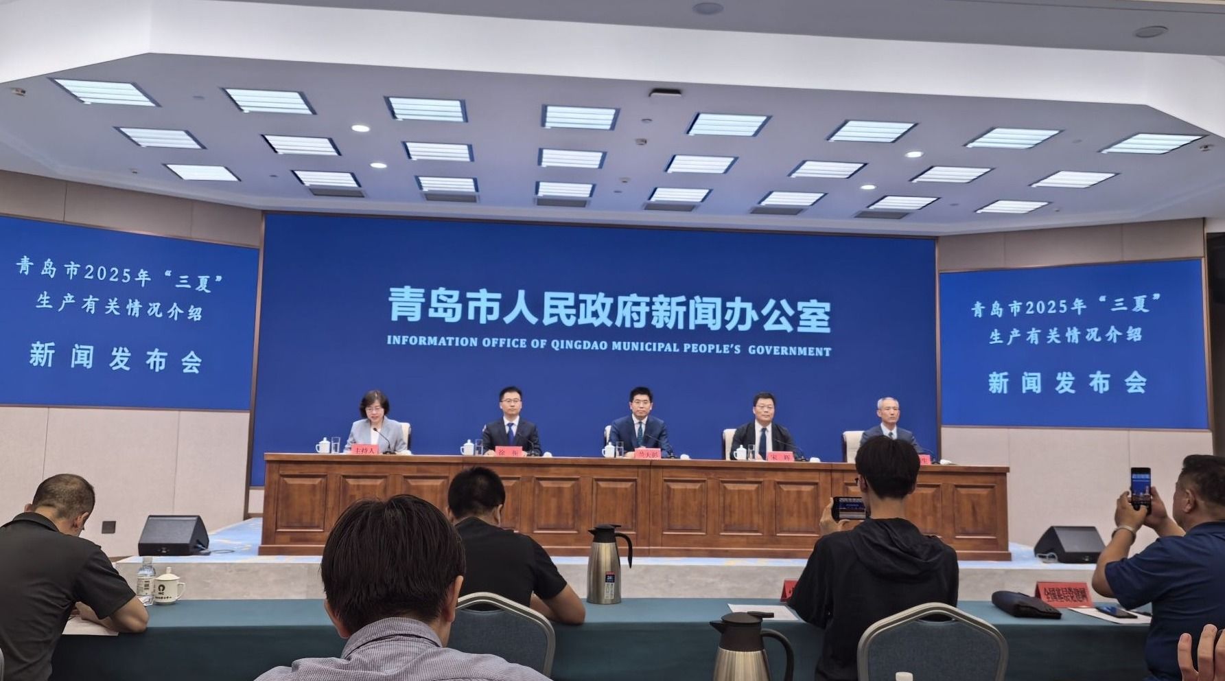六月二十六日下午,青岛市政府新闻办召开新闻发布会,介绍2025年“三夏”生产情况。记者从新闻发布会上了解到,截至6月25日,青岛市所有小麦均已完成,秋季作物播种380多万亩,夏季管理稳步推进。其中,即墨区蓝村街道绿色增粮先行区种粮大户刘君绪的“五良结合”示范田实打亩产886.9KG,实现技术集成创新的历史性突破,创造全市高产示范田单产历史最高纪录。