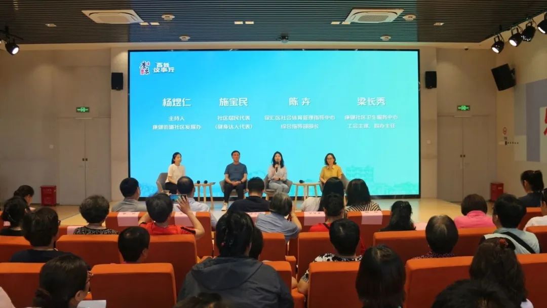 近日,徐汇区健康街道党群服务中心举办了“大城市小事季讲”第四届大讨论活动。活动邀请了徐汇区体育局、上海市体育场馆设施管理中心、徐汇区社会体育管理指导中心、健康街道社区卫生服务中心相关负责人参加。70多人现场参加了区人大代表、社区文化体育团队、健身专家、社区工作者和社区居民代表。