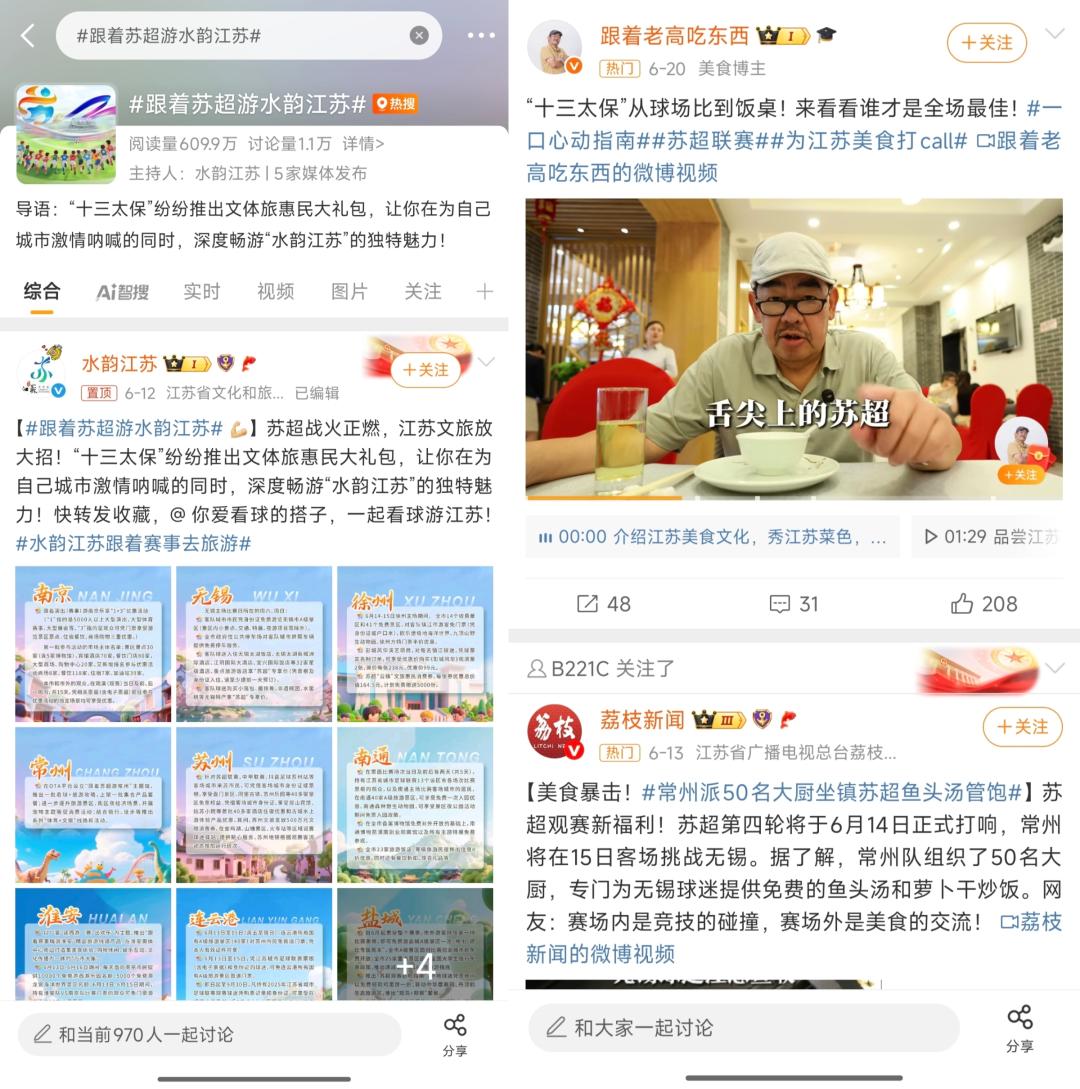 尤其在微博这样的多元化社交平台上,热点爆发将产生更加明显的联动效应。网民可在“舌尖上的苏超”#为江苏美食打电话。#;还可借助“十三太保”推出的文体旅便民大礼包,#跟随苏超游泳韵江苏#。