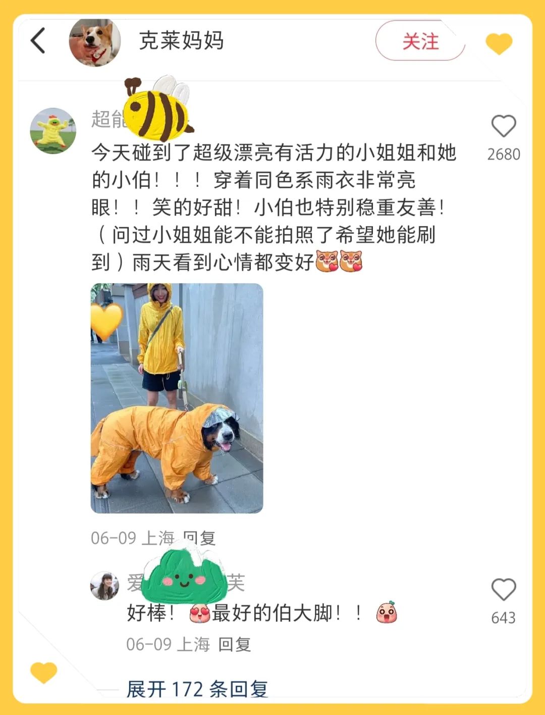 6月,江南进入雨季。小红书用户“克莱母亲”发布了一篇帖子“看看黄梅天上海的遛狗者”。一两天就有7000多条评论涌入,大家纷纷。雨天遛狗晒梅的狼狈样。