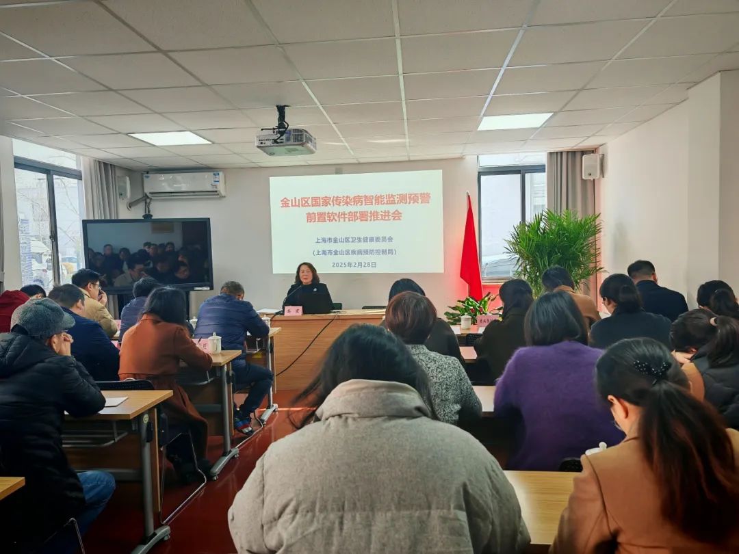 金山区在推进国家传染病智能预测预警系统建设的过程中,敢为人先,高效实施。2024 年 12 月 11 日,上海市第六人民医院金山分院成为全市首家正式应用外部软件的二级及以上医疗机构,形成可复制推广的医疗机构。 金山经验。有了这个成功的案例,2025 年 1 月 2 当天,全区7家二、三级医疗机构全部完成转正应用,为后续工作打下坚实基础。