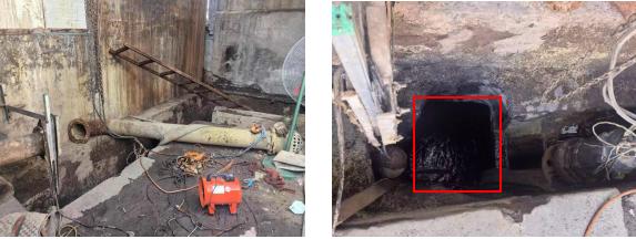 事发当天,公司组织员工对污水处理设备进行检查、维护和疏浚,事故发生在污水处理设备的集水池中。污水处理设备集水池位于地下1.3m以下,宽度为5m×4m×2.2m(长宽深),事故发生时存水深度约为80cm。