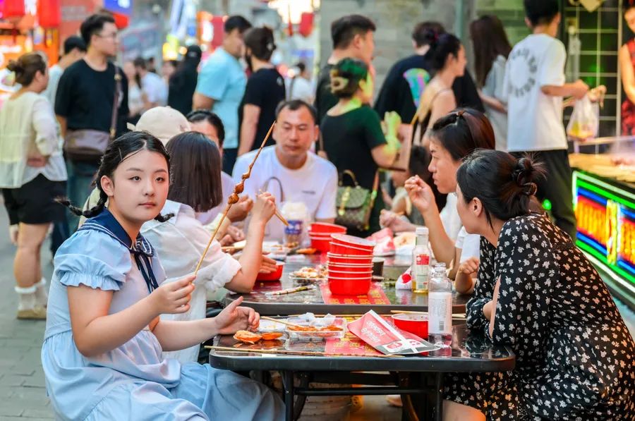 盛夏时节,玉泉区塞满了老街旅游休闲区,五彩缤纷,游客如织。大家品尝美食,欣赏夜景,看表演,享受清爽,在喧嚣和诗意中画出“半城烟火半城诗”的夏日画轴。(泉媒记者:丁根厚)
