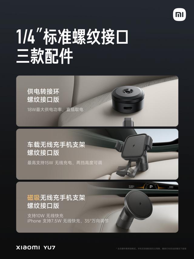 但在 YU7 车内,小米布置好了 9 磁性附件的接口。