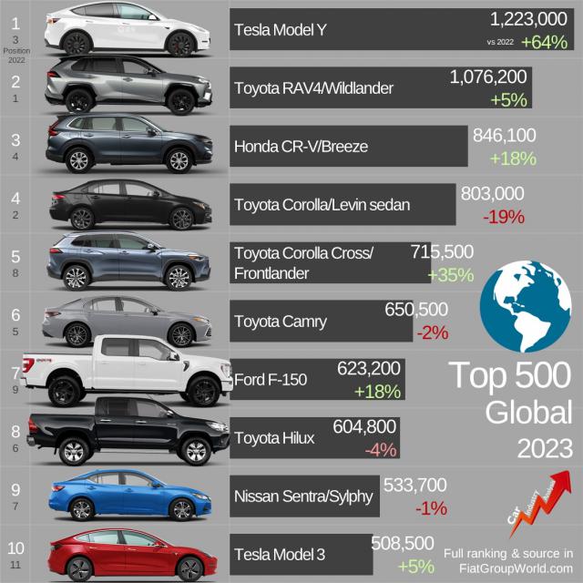 四年后的 2023 年,特斯拉 Model Y 销量超过了老牌冠军丰田,成为世界上最畅销的单一车型,这是整个汽车历史上从未见过的。