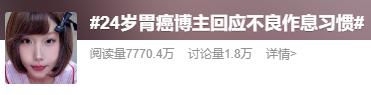 有网友看了评论说:“我也刚刚发现胃癌,和她的生活方式差不多,得胃癌的人有类似的习惯吗?”