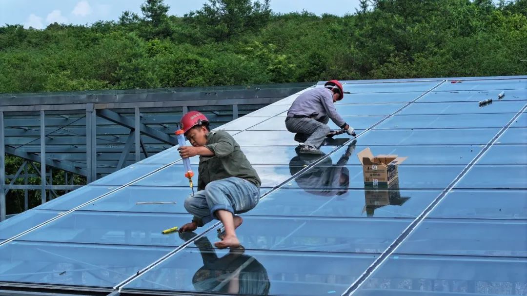 玻璃安装工人正在进行