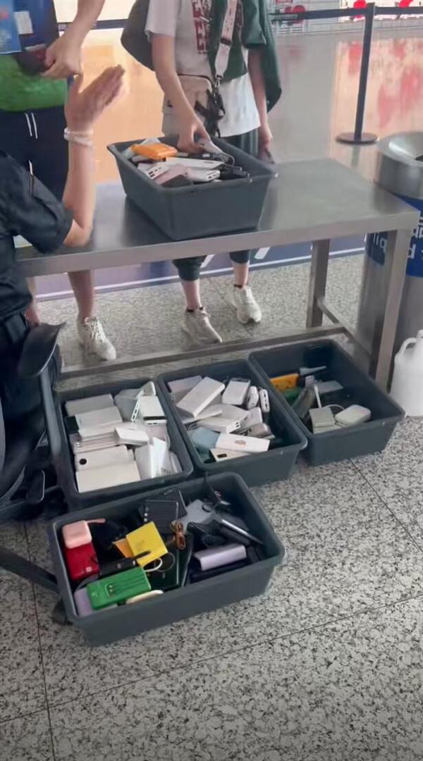 早晨8点 机场已经收集了3大篮自弃充电宝宝