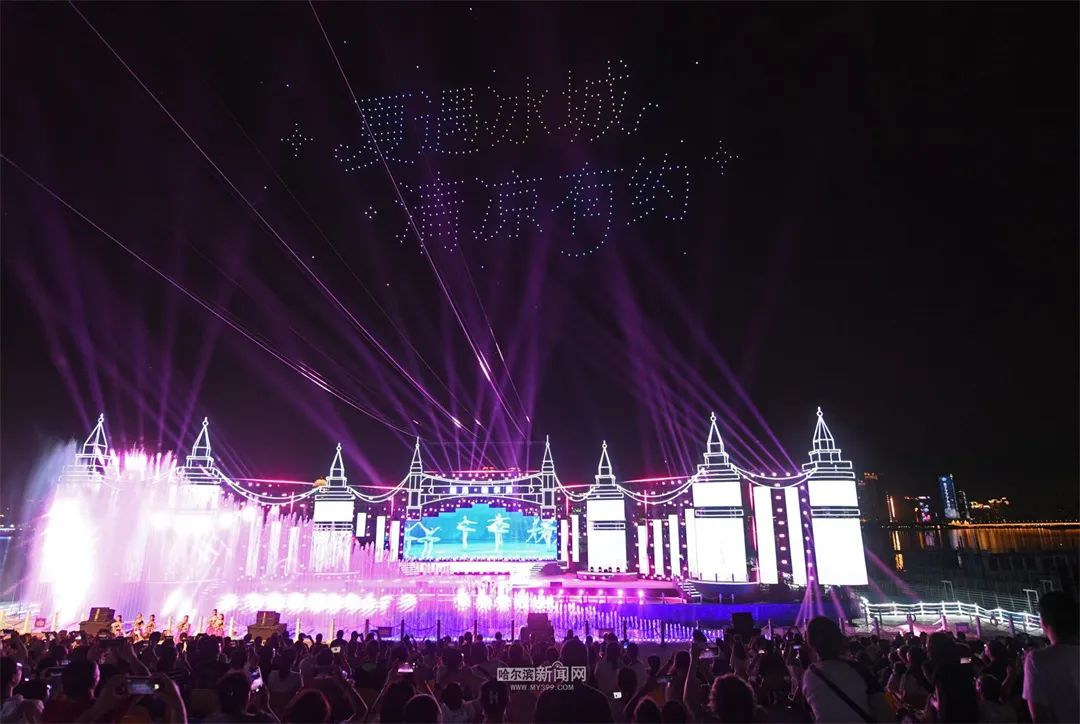 无人机首秀点亮冰城江夜空 |《遇见哈尔滨》的创意又增添了新的亮点。