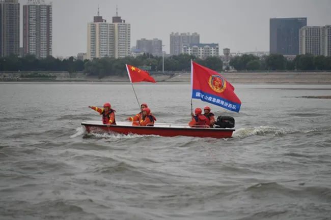 这次演习的背景模拟了孝义市遭受强降水造成的严重洪水灾害。我们国家矿山应急救援汾西队闻令而动,迅速聚集了40多名指战员,携带4800m。⊃3;18台(套)先进救援装备,包括/h大流量紧急排水车、2艘动力冲锋舟、无人机侦察系统、水上智能遥控机器人、水下声纳探测器等,派出卫星通信指挥车、装备车、运兵车等7辆保障车。小组迅速完成了集结和设备调整,然后根据演练计划有效地开展各种救援科目。