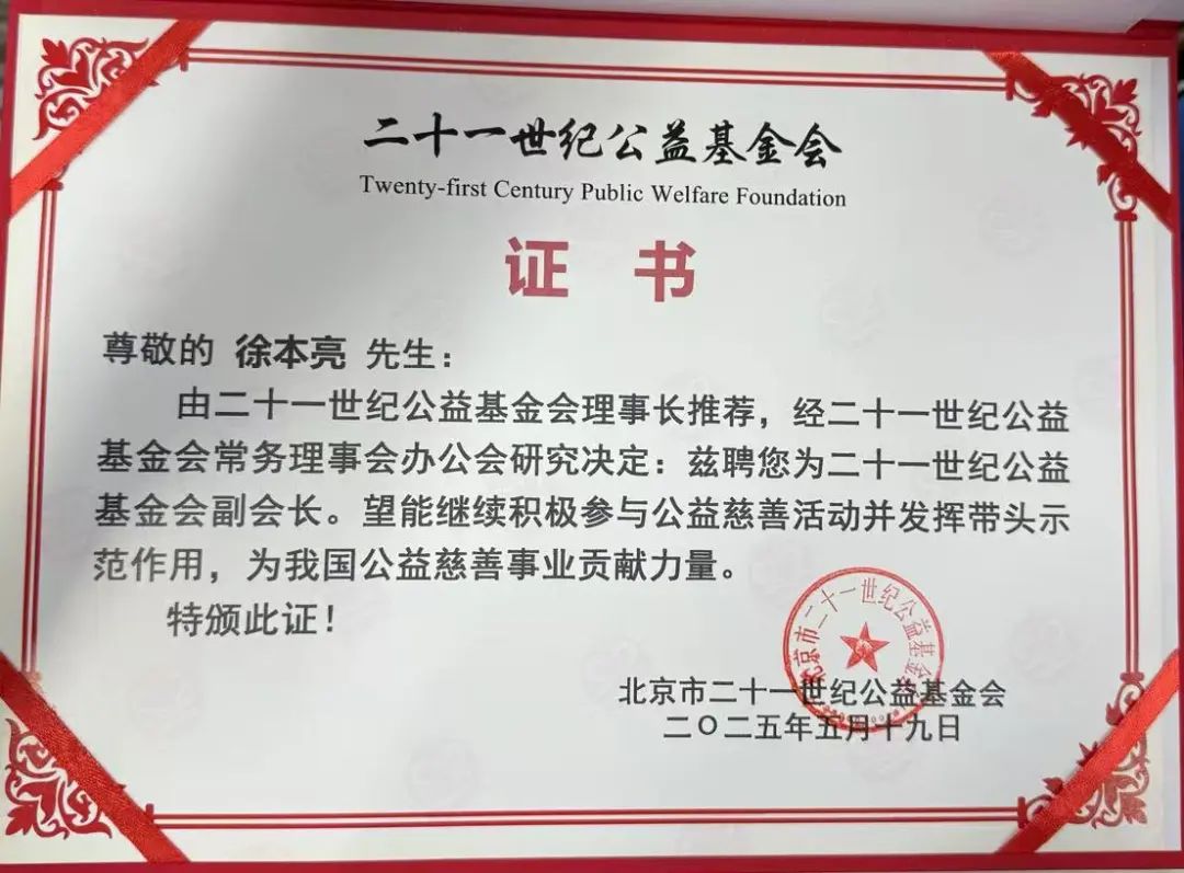 值得注意的是,21世纪公益基金会执行秘书长刘燕华也参加了这次培训。通过这次培训,刘燕华对基金会的公益活动有了全新的认识和认识。训练结束后,刘燕华与徐本亮老师进行了深入的交流,并对活动主办方的精心组织和计划表示诚挚的感谢。为了进一步深化合作,刘燕华代表21世纪公益基金会向徐本亮先生颁发了副总裁获奖证书,希望徐本亮先生能够继续积极实践公益慈善活动,充分发挥带头示范作用,携手做好公益宣传工作,为促进我国公益慈善事业高质量发展做出更多贡献。