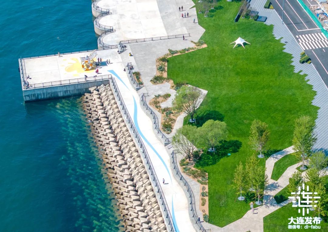 高新区还有一个新的地方可以看海,休闲!沿着凌水湾,对外开放的大连京社区公园。