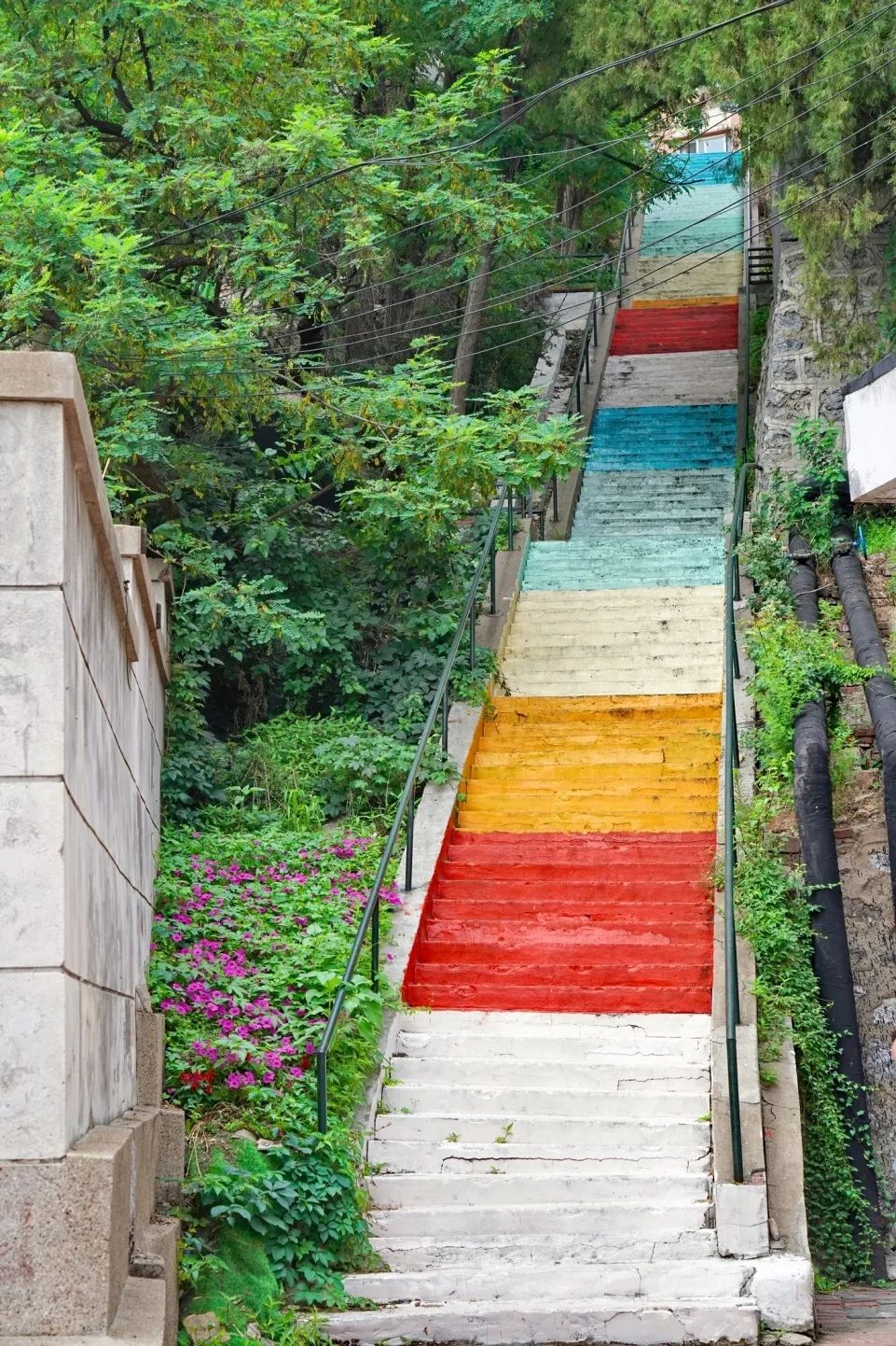 纪念街69号楼梯被“法术改造”,变成了通往童话世界的奇妙通道。五颜六色的彩虹楼梯和夏天的适应性极高,也为这里的老居民楼增添了一丝乐趣。
