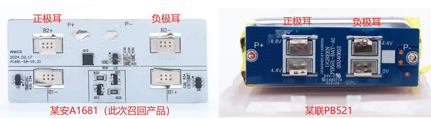 一个品牌的召回产品与另一个使用同类型安普瑞斯电池的充电宝进行了实拍对比。图片来自充电头网络。