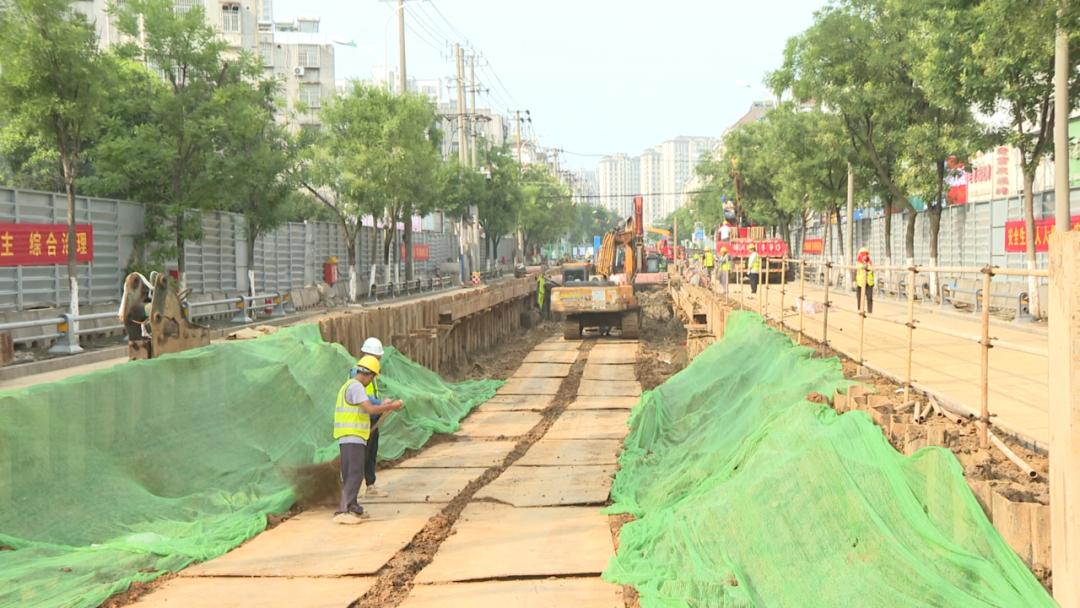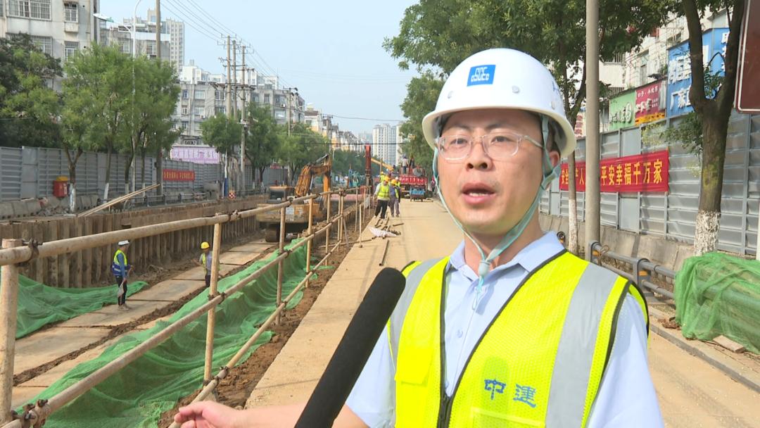 中建六局项目经理 周洪春:“目前正在进行拉申钢板桩支撑,下一步将开挖基坑。垫层和主体结构结构结束后,箱涵的整体长度约为850米,目前已完成约600米。该项目预计将在9月1日前完成,届时越城路将恢复通车。”